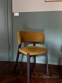 Vendo 6 sedie poltroncine rivestite in velluto lavabile color senape/ocra, eleganti e molto confortevoli.