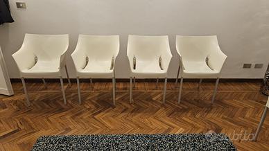 6 Poltrone Kartell disegno philippe Starck, colore avorio (bianco cera) impilabili, materiale lavabile PVC con gambe in alluminio sattinato. Non teme le escursioni termiche, seduta avvolgente
