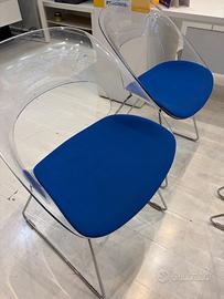 Causa cambio arredamento, vendiamo 6 sedie design trasparenti con seduta blu imbottita.