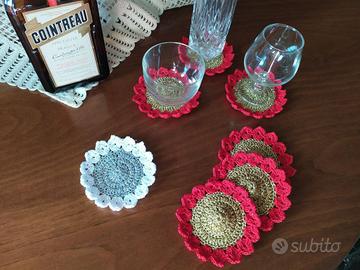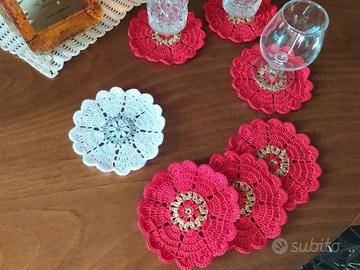 Gruppo di 6 sottobicchieri ad uncinetto in cotone colorati o con lurex.
