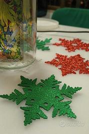 Sottobicchieri in feltro o gomma crepla a forma di fiocco di neve, molto eleganti per abbellire la tua tavola di Natale, in colori vari.