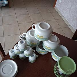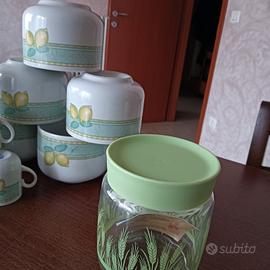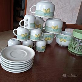 6 tazze,6 tazzine con piattino e contenitore