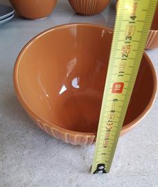 Set tavola Ikea 6 pezzi, 6 tazze/scodelle arancioni. In ceramica, di forma irregolare, nuove con etichette.