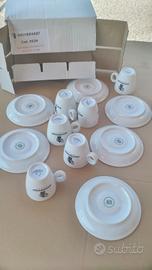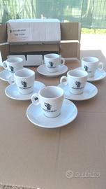 vendo 6 tazzine complete con piattino del marchio caffe' HAUSBRANDT nuove con scatola originale ..ATTENZIONE come in foto faccio notare che 1 piattino sotto e' difettato , ma una volta apoggiato sul tavolo non si vede x altre foto sono disponibile