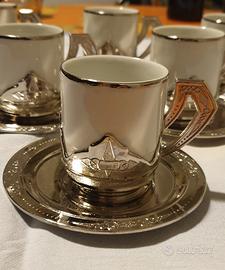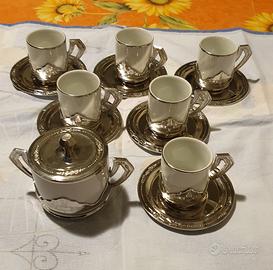 Set Vintage di porcellana bianca Monopoli, con supporto in metallo anni 60 come nuove mai usate, composte di 6 tazzine di caffè, 1 zuccheriera. Ritiro gratuito a Milano, spedizione da coordinare. Prezzo €300,00