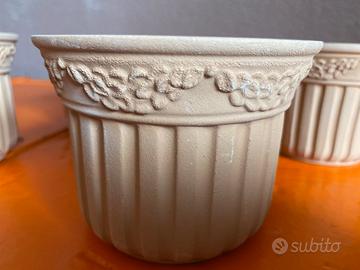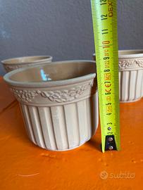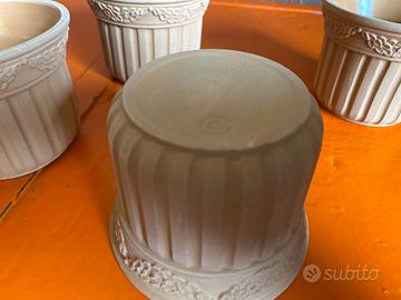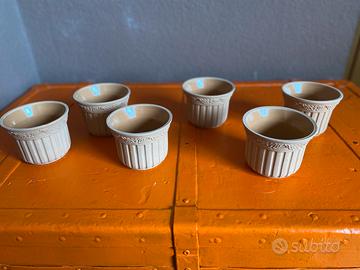 Vendo 6 vasetti in ceramica color beige con decorazione in rilievo. Perfetti per dessert, creme, gelati oppure come piccoli vasi. Dimensioni: •altezza circa 8 cm •diametro circa 10 cm Nuovi eccellenti condizioni, senza crepe. Prezzo leggermente trattabile. Disponibile per consegna a mano o spedizione. •vasetti ceramica •ciotole dessert •stampini soufflé •cocotte •ramequin •vasetti decorativi •porta piante piccoli •shabby chic •cucina