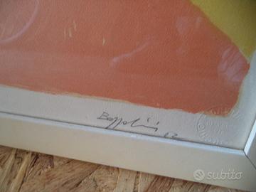 Vendo bellissimo & rarissimo quadro dell'Artista Silvano Bozzolini, numerato 21/40, dalle misure 50x70cm (con cornice 55x75cm), serigrafia (visto che è su un foglio da disegno) & in perfette condizioni generali (vedi foto). Spese di spedizione a carico di chi acquista.