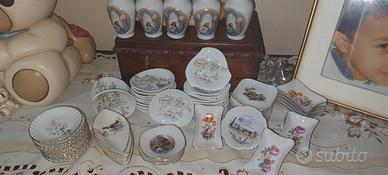 68 piattini vintage anni 40 dipinti a mano più 5 piccoli vasi porcellana bavaria da usare pure come bomboniere