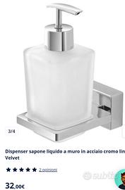 Accessori bagno completo composto da: 1 Mensola da bagno Gedy di acciaio con piano in vetro temperato 25 euro 2 porta asciugamani in acciaio euro 15,00 1 dosa sapone in acciaio e vetro satinato euro 20,00 1 porta spazzolini da appoggio in acciaio e vetro satinato euro 20,00 1 lampada al led euro 10,00. 1 portascopino in acciaio euro 6,00. Vendibili separatamente o in blocco. Se si acquista l'intero set euro 85,00. - Design moderno ed elegante.