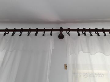 7 BASTONI ASTE per TENDE Lunghi 2/4 metri in Legno con ANELLI, GANCI, SUPPORTI, POMELLI, FINALI...