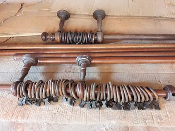 Per lo più erano montati uniti per pareti di 4/5 metri come in foto. Inoltre sono presenti circa 60 anelli con rispettivi ganci per il fissaggio delle tende e vari supporti di raccordo, pomelli e finali.