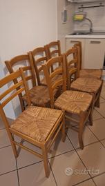 vendo n. 7 sedie in legno con impagliatura, valuto anche acquisto singoli pezzi
