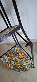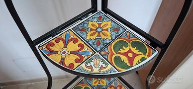 Bellissima Angoliera 4 ripiani in ferro e ceramica con decoro mattonella. Facilmente richiudibile è adatta per esterno in giardino o terrazza ma anche internamente.