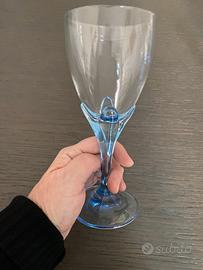 8 bicchieri, calici a stelo da vino o spumante con motivo floreale, marchio Bormioli Rocco, Bouquet design, in vetro azzurro, vintage anni '80, made in Italy, altezza 17 cm e diametro 7 cm, condizioni perfette mai usati. Ritiro a Diano Marina, non si effettua spedizione.