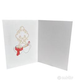 • Interno: Disegno di due tazze fumanti sulla sinistra; lato destro bianco per scrivere il proprio messaggio.