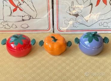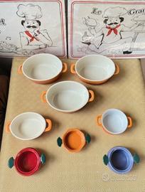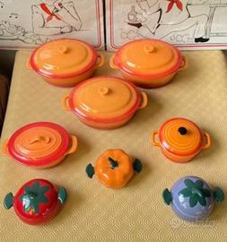 Ceramica smaltata, Francia - 2010-2020. Magnifica serie composta da 3 cocotte accompagnate da 5 mini cocotte, verrine e terrine in ceramica smaltata in stile Le Creuset, diventando un elemento indispensabile nella tua cucina. Infatti, le mini cocotte sono ideali per una presentazione originale e individuale: