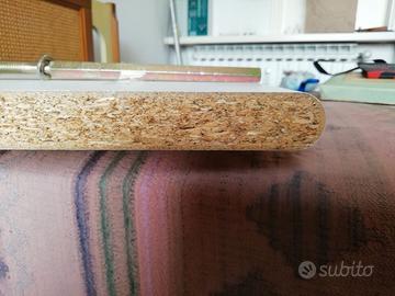 Mensole in truciolato usate con supporti in metallo.