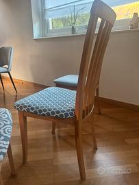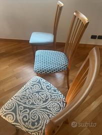 Vendo sedie in frassino con copertura della seduta fatta su misura e sfoderabile. Per scelta dell’arredatore le coperture sono fatte con tessuti diversi. Sono solide, molto comode e in ottimo stato, tenute sempre con cura. Vendo solo in blocco a 40€ cad totale 320€ non trattabili Ritiro a mano zona Como