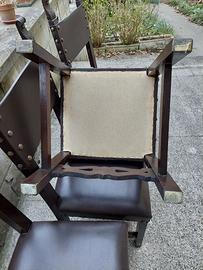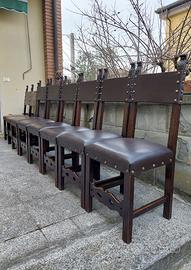 8 sedie stile rustico o rinascimentale, 6 grandi e 2 piccole, nelle foto di gruppo sono quelle che hanno un colore più chiaro. Il prezzo è 50 euro cadauna.