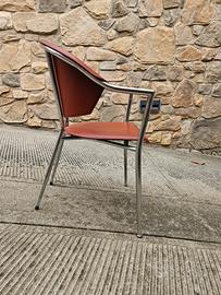 8 sedie da pranzo vintage. Struttura in metallo cromato con seduta e schienale in pelle marrone. Design semplice ma originale. Altezza seduta 43 cm. Dimensioni: H80 x L54 x P45 Colore: marrone