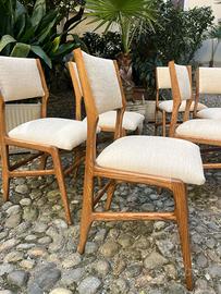 Raro gruppo di 8 sedie di Gio ' Ponti per Cassina , modello 687, anni 50 , in legno di frassino massello , lucidato al naturale , tessuto in velluto color crema , stato di conservazione pari al nuovo , bellissime , visionabili in via Anfossi 8 Milano