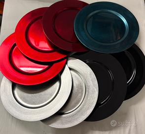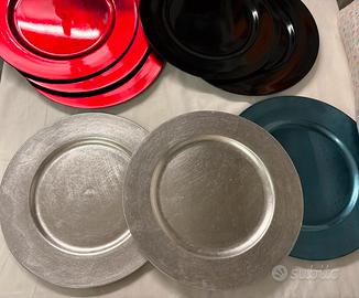 8 sottopiatti rotondi in plastica, 2 neri , 2 argento, 3 rossi, 1 azzurro. Diametro cm. 33
