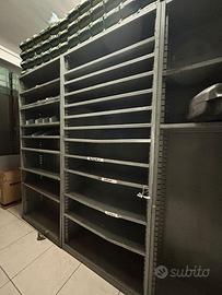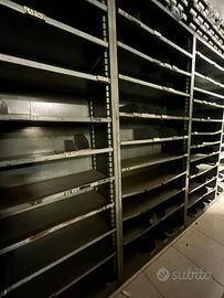 VENDESI NR 81 SCAFFALLI IN FERRO DI ALTO SPESSORE COMPRESI DI RIPIANI, DIVISORI E CASSETTI. LA MERCE SI TROVA IN OTTIME CONDIZIONI, OTTIMA QUALITA' E PUO' OSPITARE ARTICOLI DI NOTEVOLE PESO. RITIRO IN SEDE, CATANIA CENTRO.