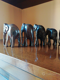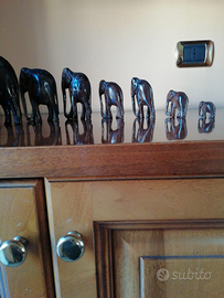 9 elefantini di legno usati ma ben conservati. Soprammobili