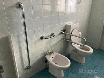 Set completo maniglioni, barre di appoggio e sicurezza + seggiolino + box doccia per attrezzare alloggio in modo da eliminare barriere architettoniche. In tutto: