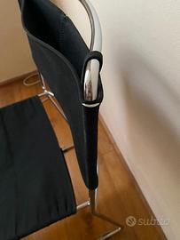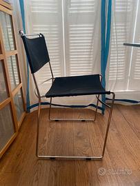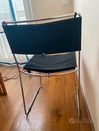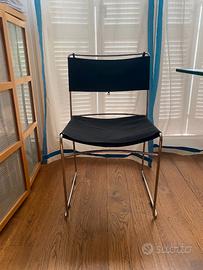 Disegnata da Enzo Mari nel 1974 e premiata con il Compasso d’Oro nel 1979. La sedia è caratterizzata da una struttura in tondino di acciaio cromato curvato ed elettrosaldato. La seduta e lo schienale sono rivestite in tessuto sfoderabile di cotone rinforzato (nero). I piedini in gomma sono autentici. E' un'icona del design essenziale e funzionale. Impilabile e versatile, la Delfina è perfetta per ambienti moderni, spazi di lavoro o sale da pranzo dal gusto contemporaneo.