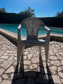 9 tavoli rotondi e 45 sedie in plastica da esterno