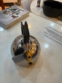 Per chiusura attività propongo bollitori in acciaio inossidabile 18 10 con fischietto melodico in ottone e manico in P nero fondo in acciaio magnetico adatto la cottura induzione Officina Alessi altezza centimetri 19 cl 200 diametro centimetri 16,5. Articolo in perfette condizioni con imballo originale il suo prezzo di listino è di euro 259. Io lo propongo al prezzo scontato di 130 € con spese di spedizione a carico dell’acquirente. Il prezzo non è trattabile.