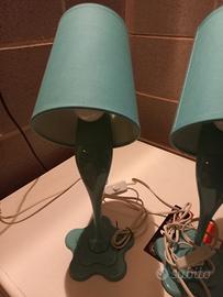 coppia di abajour per cameretta ragazzi, azzurre, perfettamente funzionanti, praticamente nuove. sembrano due vasi di vernice che si rovescia