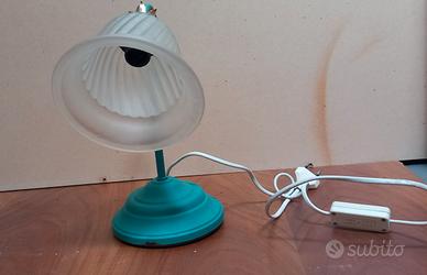 vendo abajour vintage in metallo con paralume in vetro opaco. portalampada a filetto fine ideale per comodino, tavolo, scrivania, etc.etc.
