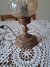 VENDESI ABAJUR ANTICA CON PIEDISTALLO IN OTTONE LAVORATO E APLIC IN VETRO. PEZZO UNICO