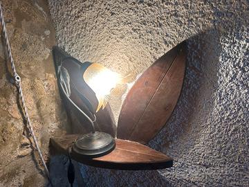 Due abat-jour a forma di fiore, vetro e ferro battuto.