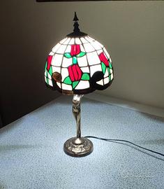 Abaut Jour in bronzo in stile liberty da tavolo o per comò, su disegno di Moreau. Abbinabile a due lampade sempre in stile liberty per comodini (vedi altra inserzione). Dimensioni: altezza cm 47; ampiezza del paralume cm 22; peso kg 2,5.
