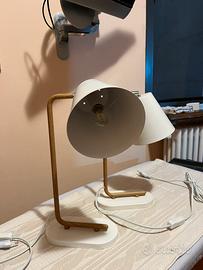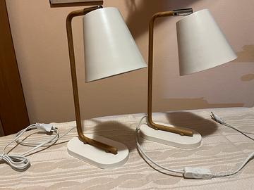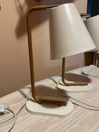 Coppia Abat jour di design, marca Lucide, struttura in metallo e legno colore bianco latte, complete di lampadina led