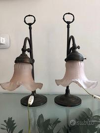 N. 2 LAMPADE/ABAT-JOUR ANTIQUARIATO CON CAPPELLO IN VETRO DI MURANO, MODELLO LIBERTY.