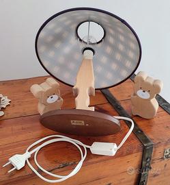 Abat-jour in legno naturale realizzato artigianalmente con 2 orsetti ad incastro. Marca AZUR, made in Loppiano