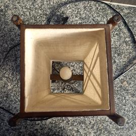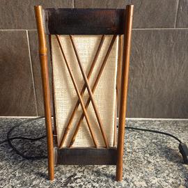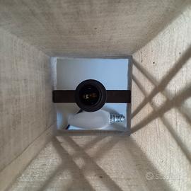 Abat jour in legno e tessuto. Prodotto realizzato a mano da artigiano francese. Dimensioni: 33 x 15 x 15 cm. Materiale: legno + tessuto. Attacco per lampadina E14 da 230 volt e 40 watt. Accensione con interruttore. In vendita anche seconda abat jour dello stesso artista con grafica del legno differente a 50 + 50 = 100 euro.