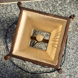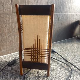 Abat jour in legno e tessuto. Prodotto realizzato a mano da artigiano francese. Dimensioni: 33 x 15 x 15 cm. Materiale: legno + tessuto. Attacco per lampadina E14 da 230 volt e 40 watt. Accensione con interruttore. In vendita anche seconda abat jour dello stesso artista con grafica del legno differente a 50 + 50 = 100 euro.