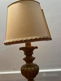 Abat jour in legno color oro con capoello beige. Perfettamente funzionante.
