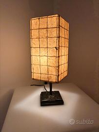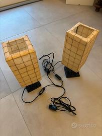 Coppia abat-jour con base in metallo verniciato nero e paralume in carta decoupage color crema, per lampadine 230V con attacco E14