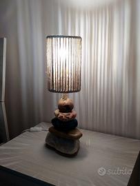 Coppia di abat-jour in pietra naturale tutto fatto a mano. Una vera e propria opera d'arte in esemplare unico. Grazie all'intreccio particolare della corda di juta, la diffusione della luce in tutta la stanza assume un aspetto singolare che cattura l'occhio ma allo stesso tempo rilassa. Le pietre tutte colorate e diverse tra loro donano un carattere unico nel suo genere all'elemento d'arredo. Dimensioni 18 x 45 x 13 centimetri.