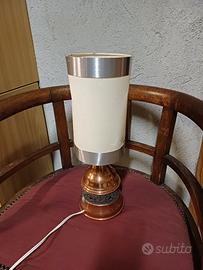 Abat-jour con base in rame. Paralume leggermente schiacciato su un lato.