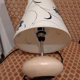 Lampada per comodino come nuova color beige chiaro con fantasia floreale blu. Possibilita' di spedizione.