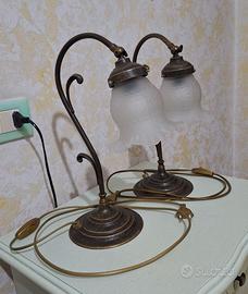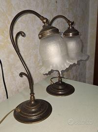 Vendo coppia di abat jour in stile art nouveau con base in metallo e paralume a tulipano in vetro smerigliato.