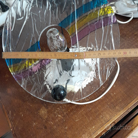 Coppia abat-jour, in plastica dura colorata, modernariato, diametro 26 cm, funzionanti, disegno colorato così come in foto. Presenta segni del tempo, leggerissima sbeccatura, evidenziata in una foto