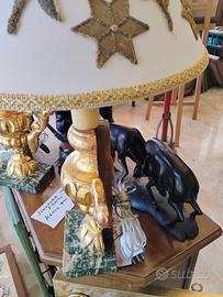 vendo 2 Abat-jour.. costituite da porta palme antiche , con paralume decorato con decori antichi in stoffa ricavati dalle vesti sacerdotali) ed impianto elettrico)